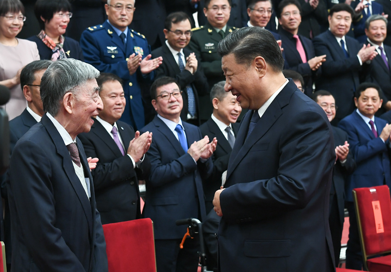 上午10時(shí)20分,大會(huì)在雄壯的國(guó)歌聲中開(kāi)始。在熱烈的掌聲中,中共中央總書(shū)記、國(guó)家主席、中央軍委主席習(xí)近平首先向獲得2020年度國(guó)家最高科學(xué)技術(shù)獎(jiǎng)的中國(guó)航空工業(yè)集團(tuán)有限公司顧誦芬院士和清華大學(xué)王大中院士頒發(fā)獎(jiǎng)?wù)?、證書(shū),同他們熱情握手表示祝賀,并請(qǐng)他們到主席臺(tái)就座。隨后,習(xí)近平等黨和國(guó)家領(lǐng)導(dǎo)人同兩位最高獎(jiǎng)獲得者一道,為獲得國(guó)家自然科學(xué)獎(jiǎng)、國(guó)家技術(shù)發(fā)明獎(jiǎng)、國(guó)家科學(xué)技術(shù)進(jìn)步獎(jiǎng)的代表頒發(fā)證書(shū)。
