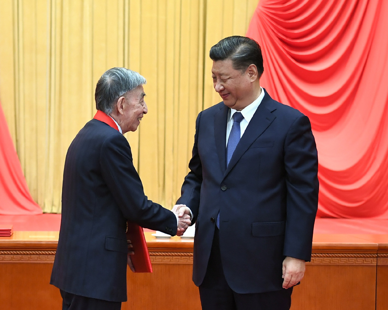 11月3日,2020年度國(guó)家科學(xué)技術(shù)獎(jiǎng)勵(lì)大會(huì)在北京人民大會(huì)堂隆重舉行。中共中央總書(shū)記、國(guó)家主席、中央軍委主席習(xí)近平向獲得2020年度國(guó)家最高科學(xué)技術(shù)獎(jiǎng)的清華大學(xué)王大中院士頒獎(jiǎng)。圖片來(lái)源:新華網(wǎng)