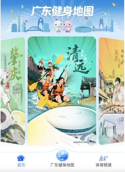 在“廣東健身地圖”首頁,用戶可以通過以走馬燈形式輪播的廣東21城體育性格海報,以及近期大火的廣東體育“千里江山圖”便捷直達當?shù)伢w育場館列表。與此同時,頁面上還集成了廣東21城體育性格的全媒體報道,將體育性格與體育場館進行融合展示。依托制作方南方日報、南方+的媒體資源,“廣東健身地圖”還將提供新鮮豐富的體育日常資訊。