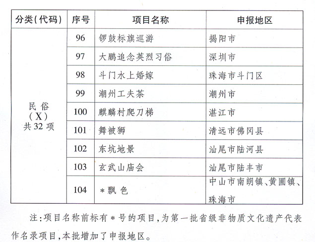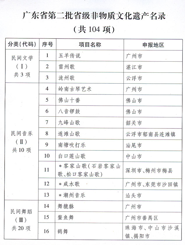 關(guān)于批準(zhǔn)并公布廣東省第二批省級(jí)非物質(zhì) 文化遺產(chǎn)名錄的通知