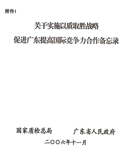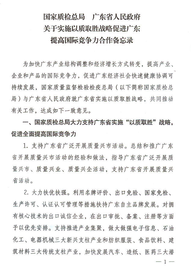 關(guān)于貫徹落實(shí)國家質(zhì)檢總局廣東省人民政府關(guān)于實(shí)施以質(zhì)取勝戰(zhàn)略促進(jìn)廣東提高國際競爭力合作備忘錄的通知