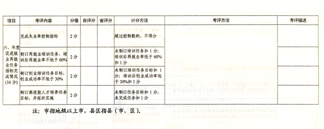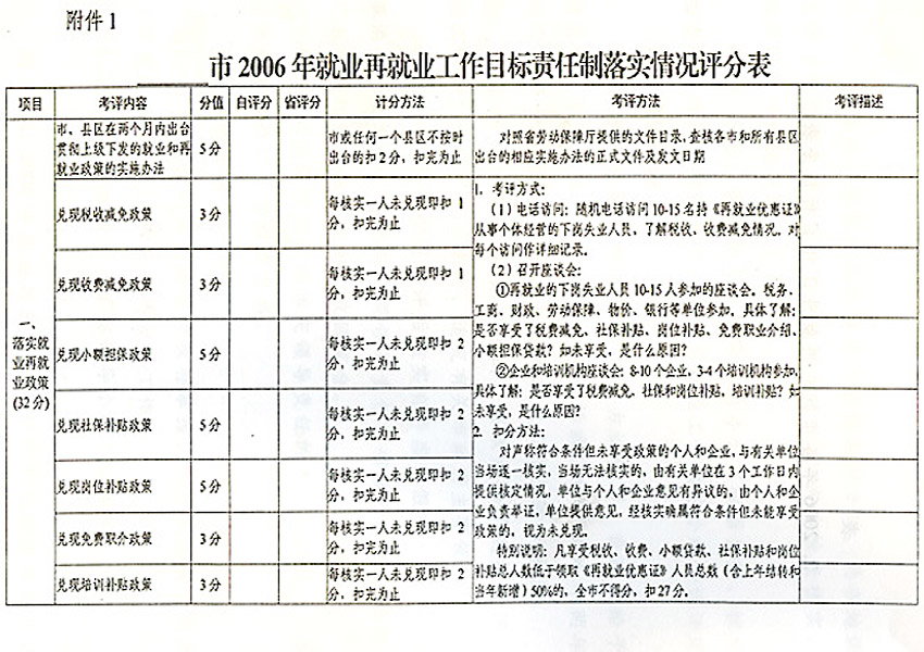 附件:1.2006年就業(yè)再就業(yè)工作目標責任制落實情況評分表