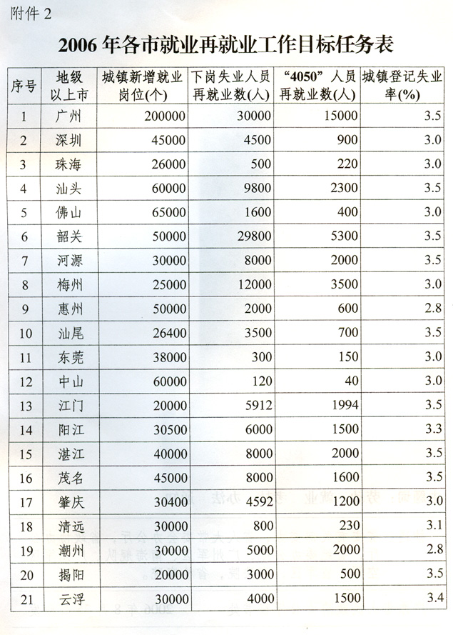 印發(fā)廣東省2006年就業(yè)再就業(yè)工作目標