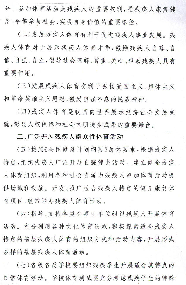 殘疾人體育工作意見(jiàn)的通知