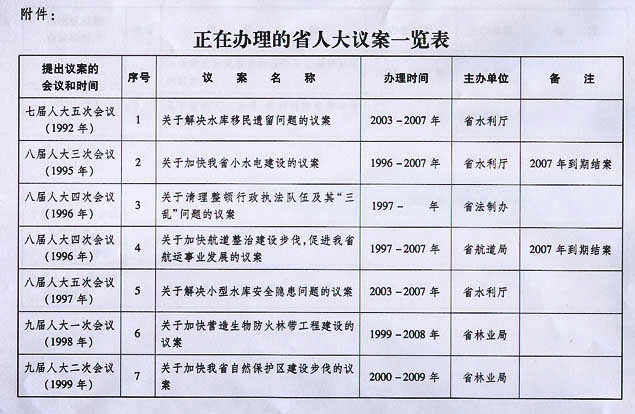 自1984年省六屆人大二次會(huì)議至2005年省十屆人大三次會(huì)議期間,省人大常委會(huì)交由省人民政府辦理的省人大議案共66件,其中53件已結(jié)案,兩件今年底結(jié)案,11件將于2008年至2013年先后結(jié)案。省委、省政府一直高度重視省人大議案辦理工作,在省人大的大力支持、監(jiān)督下,經(jīng)過各級(jí)政府、各有關(guān)部門的共同努力,實(shí)施議案取得了顯著成效。隨著形勢(shì)發(fā)展,議案辦理工作要求不斷提高,在議案項(xiàng)目資金管理及議案項(xiàng)目驗(yàn)收等方面存在一些亟待改進(jìn)的問題。為繼續(xù)做好省人大議案辦理工作,順利完成議案提出的各項(xiàng)目標(biāo)任務(wù),經(jīng)省人民政府同意,現(xiàn)將有關(guān)事項(xiàng)通知如下:
