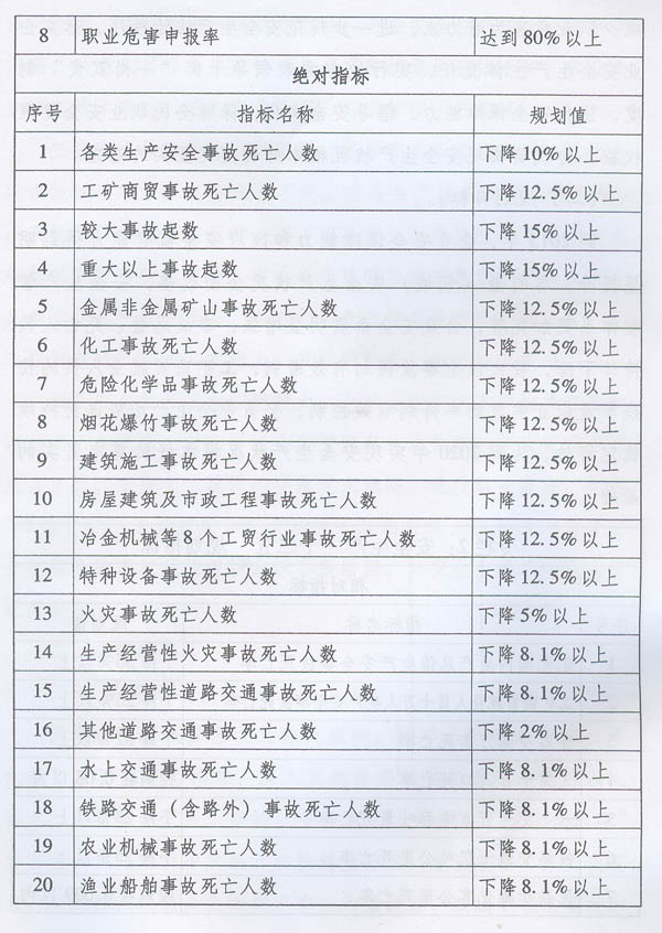 印發(fā)廣東省安全生產(chǎn)“十二五”規(guī)劃的通知 ? 各地級以上市人民政府,各縣(市、區(qū))人民政府,省政府各部門、各直屬機(jī)構(gòu): 《廣東省安全生產(chǎn)“十二五”規(guī)劃》已經(jīng)省人民政府同意,現(xiàn)印發(fā)給你們,請認(rèn)真貫徹執(zhí)行。執(zhí)行中遇到的問題,請徑向省安全監(jiān)管局、發(fā)展改革委反映。 ? ? ? ? ? 廣東省人民政府辦公廳 二○一一年六月十三日 ? ? ? ? ? 廣東省安全生產(chǎn)“十二五”規(guī)劃 ? ? 目 錄 ? 前 言 …………………………………………………………………………(1) 一、發(fā)展條件 …………………………………………………………………(2) ?。ㄒ唬┌l(fā)展基礎(chǔ)? ………………………………………………………………(2) ?。ǘ┌l(fā)展環(huán)境? ? ………………………………………………………………(4) 二、總體要求 ………………………………………………………………(6) (一)指導(dǎo)思想 ? ?………………………………………………………………(6) ?。ǘ┮?guī)劃目標(biāo) ………………………………………………………………(7) 三、主要任務(wù) …………………………………………………………………(9) ?。ㄒ唬?qiáng)化重點(diǎn)行業(yè)(領(lǐng)域)管理 ……………………………………………(9) ?。ǘ┘訌?qiáng)職業(yè)危害監(jiān)督管理…………………………………………………(14) ?。ㄈ┩晟茟?yīng)急救援體系建設(shè)…………………………………………………(15) ?。ㄋ模┐龠M(jìn)企業(yè)落實(shí)主體責(zé)任…………………………………………………(16) ?。ㄎ澹┨嵘O(jiān)管監(jiān)察執(zhí)法能力…………………………………………………(16) ?。┐罅?shí)施科技興安戰(zhàn)略…………………………………………………(18) ?。ㄆ撸┰鷮?shí)推進(jìn)安全文化建設(shè)…………………………………………………(19) 四、重點(diǎn)工程 …………………………………………………………………(20) (一)監(jiān)管監(jiān)察執(zhí)法能力建設(shè)工程……………………………………………(20) ?。ǘ┘夹g(shù)支撐體系建設(shè)工程…………………………………………………(20) ?。ㄈ?yīng)急救援體系建設(shè)工程…………………………………………………(21) ?。ㄋ模┦鹿孰[患治理工程………………………………………………………(21) (五)職業(yè)危害防控工程………………………………………………………(22) ?。┌踩幕c教育培訓(xùn)建設(shè)工程…………………………………………(22) ?。ㄆ撸┦『I纤丫戎笓]平臺與基地建設(shè)工程…………………………………(22) 五、保障措施 …………………………………………………………………(22) ?。ㄒ唬﹫?jiān)持安全生產(chǎn)與經(jīng)濟(jì)社會協(xié)調(diào)發(fā)展……………………………………(22) ?。ǘ┮?guī)范安全生產(chǎn)法治秩序…………………………………………………(23) (三)嚴(yán)格目標(biāo)考核與責(zé)任追究………………………………………………(24) ?。ㄋ模┩晟瓢踩a(chǎn)投入機(jī)制…………………………………………………(25) ?。ㄎ澹┘訌?qiáng)社會監(jiān)督和輿論監(jiān)督………………………………………………(25) ?。?qiáng)化規(guī)劃實(shí)施與評估考核………………………………………………(26) ? 前 言 ? 廣東是我國改革開放的前沿陣地,是全國探索科學(xué)發(fā)展模式的試驗(yàn)區(qū)和深化改革的先行區(qū)?!笆濉睍r(shí)期是廣東全面建設(shè)小康社會的關(guān)鍵時(shí)期,是深化改革開放、加快轉(zhuǎn)變經(jīng)濟(jì)發(fā)展方式的攻堅(jiān)時(shí)期,促進(jìn)安全生產(chǎn)工作全面發(fā)展、實(shí)現(xiàn)安全生產(chǎn)狀況根本好轉(zhuǎn)至關(guān)重要。 省委、省政府歷來高度重視安全生產(chǎn)工作。2006年以來,全省各級安全生產(chǎn)工作部門圍繞省委、省政府各項(xiàng)工作部署和《廣東省安全生產(chǎn)“十一五”規(guī)劃》確定的目標(biāo)和任務(wù),全力推進(jìn)安全生產(chǎn)工作,全省安全生產(chǎn)形勢明顯好轉(zhuǎn)?!笆濉睍r(shí)期,隨著我省經(jīng)濟(jì)結(jié)構(gòu)戰(zhàn)略性調(diào)整和經(jīng)濟(jì)發(fā)展方式加快轉(zhuǎn)變,安全生產(chǎn)工作將面臨新形勢、新任務(wù)和新特點(diǎn)??茖W(xué)編制和有效實(shí)施安全生產(chǎn)“十二五”規(guī)劃,對于堅(jiān)持科學(xué)發(fā)展,構(gòu)建和諧社會,促進(jìn)安全生產(chǎn)狀況根本好轉(zhuǎn),推動安全生產(chǎn)與經(jīng)濟(jì)社會協(xié)調(diào)發(fā)展具有十分重大的意義。 本規(guī)劃根據(jù)《廣東省國民經(jīng)濟(jì)和社會發(fā)展第十二個五年規(guī)劃綱要》編制,是廣東省“十二五”重點(diǎn)專項(xiàng)規(guī)劃,是全省安全生產(chǎn)工作的戰(zhàn)略性、綱領(lǐng)性、綜合性規(guī)劃,是各地政府、各有關(guān)部門和企業(yè)履行安全生產(chǎn)職責(zé)的重要依據(jù)。 一、發(fā)展條件 ?。ㄒ唬┌l(fā)展基礎(chǔ)。 “十一五”時(shí)期,我省的安全生產(chǎn)工作取得重大進(jìn)展,安全生產(chǎn)形勢明顯好轉(zhuǎn),為實(shí)現(xiàn)安全生產