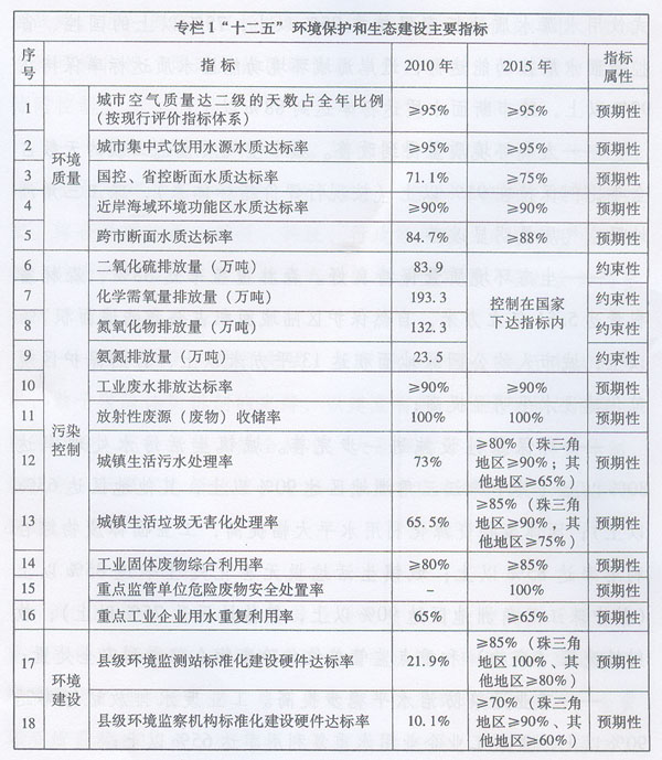 印發(fā)廣東省環(huán)境保護(hù)和生態(tài)建設(shè) “十二五”規(guī)劃的通知 ? 各地級(jí)以上市人民政府,各縣(市、區(qū))人民政府,省政府各部門、各直屬機(jī)構(gòu): 《廣東省環(huán)境保護(hù)和生態(tài)建設(shè)“十二五”規(guī)劃》業(yè)經(jīng)省人民政府同意,現(xiàn)印發(fā)給你們,請(qǐng)認(rèn)真組織實(shí)施。實(shí)施中遇到的問(wèn)題,請(qǐng)徑向省環(huán)境保護(hù)廳、發(fā)展改革委反映。 ? ? ? ? 廣東省人民政府辦公廳 二○一一年七月二十八日 ? ? ? ? ? 廣東省環(huán)境保護(hù)和生態(tài)建設(shè) “十二五”規(guī)劃 ? ? 目 錄 ? 一、現(xiàn)狀、機(jī)遇與挑戰(zhàn)………………………………………………(1) ?。ㄒ唬笆晃濉杯h(huán)保工作取得的成效………………………………(1) ?。ǘ笆濉杯h(huán)保工作面臨的機(jī)遇與挑戰(zhàn)………………………(4) 二、指導(dǎo)思想、原則及目標(biāo)…………………………………………(7) ?。ㄒ唬┲笇?dǎo)思想…………………………………………………………(7) ?。ǘ┗驹瓌t…………………………………………………………(7) ?。ㄈ┲饕繕?biāo)…………………………………………………………(8) 三、強(qiáng)化環(huán)境調(diào)控,促進(jìn)綠色發(fā)展…………………………………(11) (一)分區(qū)引導(dǎo),優(yōu)化產(chǎn)業(yè)布局………………………………………(11) ?。ǘp排倒逼,促進(jìn)產(chǎn)業(yè)結(jié)構(gòu)轉(zhuǎn)型升級(jí)……………………………(12) ?。ㄈ┚G色提升,構(gòu)建環(huán)境友好型產(chǎn)業(yè)體系…………………………(14) 四、加強(qiáng)綜合治理,改善環(huán)境質(zhì)量…………………………………(15) ?。ㄒ唬┙y(tǒng)籌管理,推進(jìn)水環(huán)境質(zhì)量持續(xù)好轉(zhuǎn)…………………………(15) ?。ǘ┞?lián)防聯(lián)控,改善大氣環(huán)境質(zhì)量…………………………………(18) ?。ㄈ┤瘫O(jiān)管,加強(qiáng)重金屬污染綜合防治…………………………(22) ?。ㄋ模┨嵘芰?,確保固體廢物安全處置……………………………(24) (五)強(qiáng)化管理,改善聲環(huán)境質(zhì)量……………………………………(26) 五、加強(qiáng)農(nóng)村生態(tài)保護(hù),構(gòu)建生態(tài)安全屏障………………………(26) (一)城鄉(xiāng)統(tǒng)籌,提高農(nóng)村環(huán)境保護(hù)水平……………………………(26) (二)試點(diǎn)示范,強(qiáng)化土壤環(huán)境保護(hù)…………………………………(28) ?。ㄈ┍SY(jié)合,構(gòu)筑生態(tài)安全格局…………………………………(29) 六、強(qiáng)化風(fēng)險(xiǎn)防控,確保環(huán)境安全…………………………………(32) ?。ㄒ唬?qiáng)化重點(diǎn)污染源風(fēng)險(xiǎn)防控………………………………………(32) (二)保障核與輻射環(huán)境安全…………………………………………(32) ?。ㄈ┘訌?qiáng)環(huán)境風(fēng)險(xiǎn)應(yīng)急管理…………………………………………(33) 七、加強(qiáng)能力建設(shè),全面提升環(huán)境監(jiān)管水平………………………(34) ?。ㄒ唬┘訌?qiáng)環(huán)境監(jiān)測(cè)預(yù)警能力建設(shè)……………………………………(34) ?。ǘ┨嵘h(huán)境執(zhí)法監(jiān)督能力…………………………………………(36) ?。ㄈ┨岣吆伺c輻射安全監(jiān)管能力……………………………………(37) ?。ㄋ模┨嵘h(huán)境信息化水平……………………………………………(37) ?。ㄎ澹┘訌?qiáng)環(huán)境宣教能力建設(shè)…………………………………………(38) 八、創(chuàng)新機(jī)制與政策,提升環(huán)境保護(hù)綜合管理水平 ……………(38) (一)提高環(huán)保綜合決策與協(xié)調(diào)能力…………………………………(38) ?。ǘ┩七M(jìn)環(huán)保法規(guī)體系建設(shè)…………………………………………(39) (三)健全環(huán)境經(jīng)濟(jì)激勵(lì)機(jī)制…………………………………………(40) ?。ㄋ模┨嵘萍贾文芰Γ七M(jìn)環(huán)保產(chǎn)業(yè)發(fā)展………………………(41) ?。ㄎ澹?qiáng)化公眾環(huán)保意識(shí),發(fā)揮環(huán)保社會(huì)監(jiān)督作用…………………(42) ?。┘訌?qiáng)環(huán)保合作交流………………………………………………(44) 九、實(shí)施重點(diǎn)工程,落實(shí)規(guī)劃任務(wù)…………………………………(45) 十、規(guī)劃實(shí)施保障 ……………………………………………………(45) (一)加強(qiáng)組織領(lǐng)導(dǎo)……………………………………………………(45) ?。ǘ┓纸饴鋵?shí)任務(wù)……………………………………………………(46) (三)強(qiáng)化評(píng)估考核……………………………………………………(46) 附表1水污染防治重點(diǎn)工程……………………………………………(47) 附表2大氣污染防治重點(diǎn)工程…………………………………………(53) 附表3農(nóng)村環(huán)境保護(hù)重點(diǎn)工程…………………………………………(56) 附表4固體廢物處理處置重點(diǎn)工程……………………………………(59) 附表5生態(tài)建設(shè)重點(diǎn)工程………………………………………………(63) 附表6核與輻射安全保