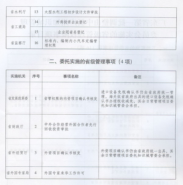 委員會實施的省級管理權(quán)限事項目錄