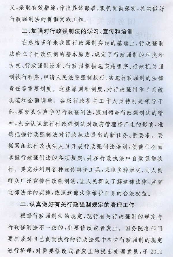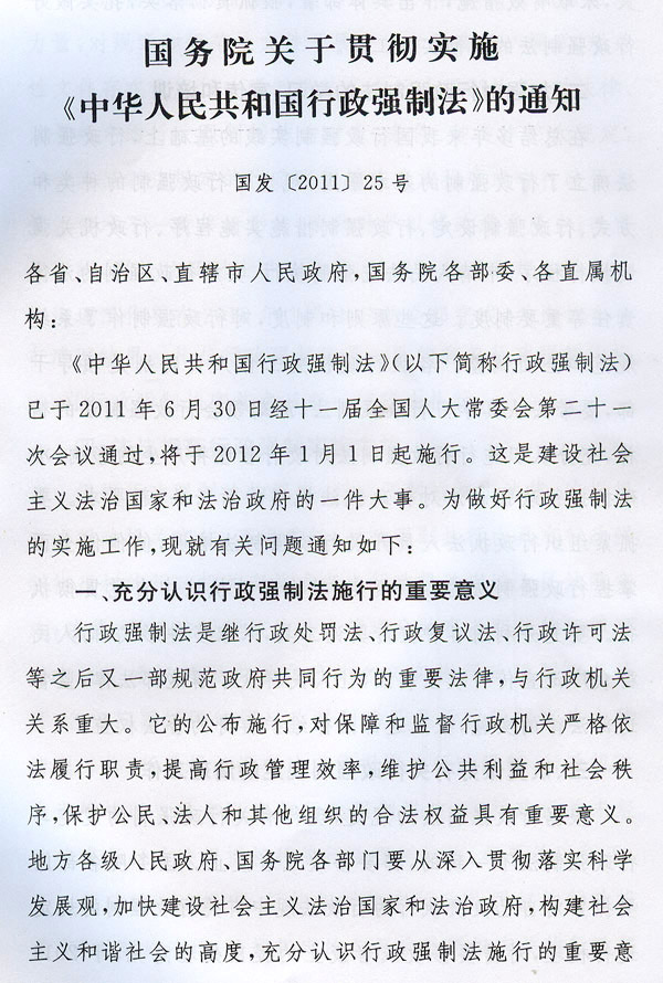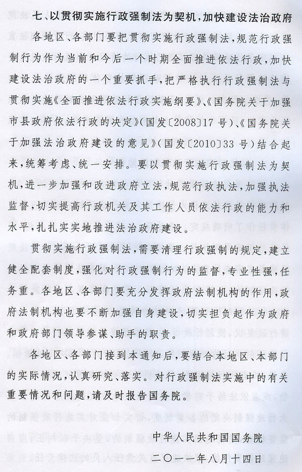 轉(zhuǎn)發(fā)國務(wù)院關(guān)于貫徹實施 《中華人民共和國行政強制法》的通知 ?