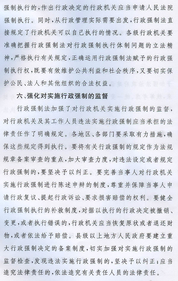 各地級以上市人民政府,各縣(市、區(qū))人民政府,省政府各部門、各直屬機構(gòu): 現(xiàn)將《國務(wù)院關(guān)于貫徹實施〈中華人民共和國行政強制法〉的通知》(國發(fā)〔2011〕25號)轉(zhuǎn)發(fā)給你們,并結(jié)合我省實際,提出以下意見,請一并貫徹實施。 一、認真開展有關(guān)行政強制規(guī)定的清理工作 各地、各部門要抓緊組織力量,對現(xiàn)行有關(guān)行政強制的地方性法規(guī)、政府規(guī)章和規(guī)范性文件開展一次專項清理,對行政強制依據(jù)、實施主體、實施程序等現(xiàn)行規(guī)定與行政強制法不一致的,要及時修改或者廢止。各地級以上市人民政府、順德區(qū)人民政府負責本級政府規(guī)章、規(guī)范性文件的清理工作,并負責匯總所轄各縣(市、區(qū))政府的清理結(jié)果。各部門、各直屬機構(gòu)負責本單位牽頭實施或者配合實施的地方性法規(guī)、政府規(guī)章和規(guī)范性文件的清理工作。有關(guān)全省行政強制規(guī)定的清理工作由省法制辦牽頭負責。 二、加快推進行政強制法配套制度建設(shè) 各地、各部門要根據(jù)行政強制法的規(guī)定,結(jié)合實際,建立健全實施行政強制法的相關(guān)配套制度,規(guī)范行政強制程序。省法制辦和各較大的市法制機構(gòu)要著重就與實施行政強制法相配套、涉及行政機關(guān)共同行為的制度建設(shè)進行調(diào)研,待條件成熟時,提請制訂相應的地方性法規(guī)或規(guī)章。 三、切實加強對實施行政強制行為的監(jiān)督 各地、各部門要結(jié)合行政執(zhí)法責任制建設(shè),加強對實施行政強制行為的監(jiān)督,確保行政強制行為合法、適當。法制部門要加強對行政機關(guān)實施行政強制行為的監(jiān)督,并配合監(jiān)察部門嚴肅查處違法實施行政強制的責任人。逐步將行政機關(guān)實施行政強制工作納入行政執(zhí)法電子監(jiān)察系統(tǒng)。 ? 廣東省人民政府 二○一一年十月十七日? ? ? |