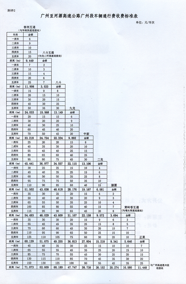 關(guān)于廣州至河源高速公路廣州段 車輛通行費(fèi)問題的復(fù)函