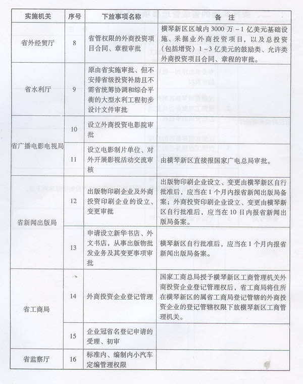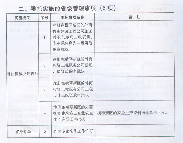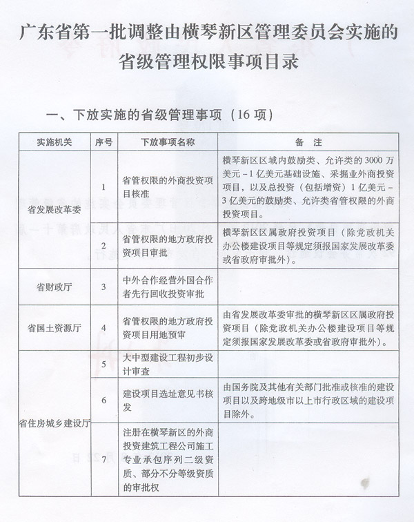 名稱: | 廣東省第一批調(diào)整由橫琴新區(qū)管理委員會(huì)實(shí)施的省級(jí)管理權(quán)限事項(xiàng)目錄 | ||