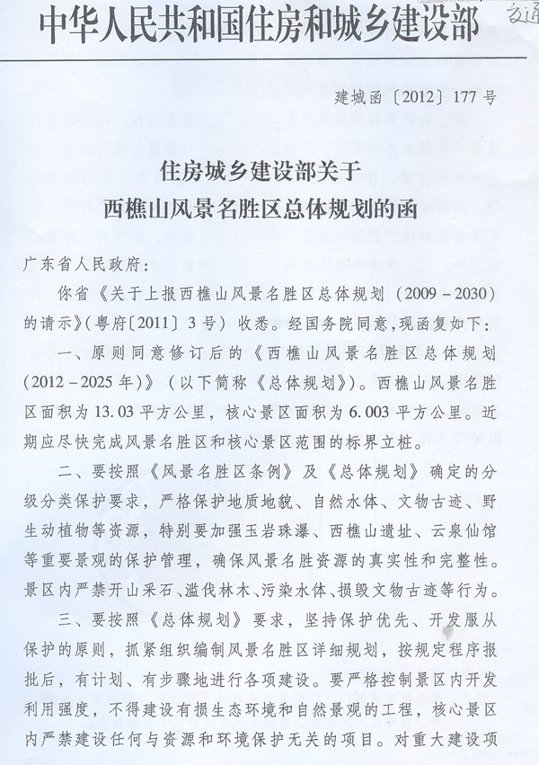 名稱: | 廣東省人民政府轉發(fā)住房城鄉(xiāng)建設部關于西樵山風景名勝區(qū)總體規(guī)劃的函的通知 | ||