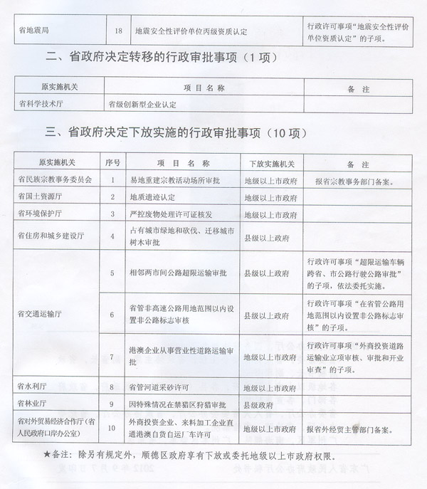 名稱: | 廣東省人民政府2012年行政審批制度改革事項(xiàng)目錄(第二批) | ||