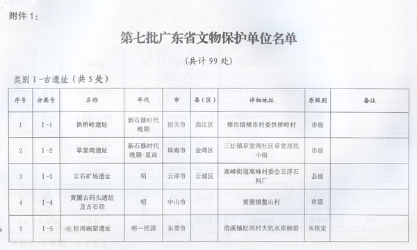 ? 廣東省人民政府關(guān)于公布第七批 廣東省文物保護單位的通知 ? 各地級以上市人民政府,各縣(市、區(qū))人民政府,省政府各部門、各直屬機構(gòu): 根據(jù)《中華人民共和國文物保護法》有關(guān)規(guī)定和第七批廣東省文物保護單位評估委員會評估意見,省人民政府同意省文化廳提出的第七批廣東省文物保護單位(共計99處),現(xiàn)予公布。 各地、各有關(guān)單位要認(rèn)真貫徹“保護為主、搶救第一、合理利用、加強管理”的方針,切實做好文物的保護、利用和管理工作。 ? 附件:第七批廣東省文物保護單位名單 ? ? ? ? 廣東省人民政府 2012年10月20日 ? ? ? ? ? ? ? ? ? ? ? ? ? |