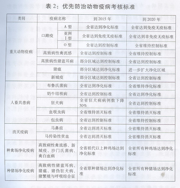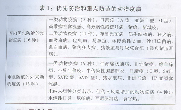 廣東省人民政府辦公廳關于印發(fā)《廣東省中長期 動物疫病防治規(guī)劃(2012—2020年)》的通知 ? 各地級以上市人民政府,各縣(市、區(qū))人民政府,省政府各部門、各直屬機構: 《廣東省中長期動物疫病防治規(guī)劃(2012—2020年)》已經(jīng)省人民政府同意,現(xiàn)印發(fā)給你們,請認真貫徹執(zhí)行。執(zhí)行過程中遇到的問題,請徑向省農(nóng)業(yè)廳反映。 ? ? ? 廣東省人民政府辦公廳 2012年12月31日 ? ? ? 廣東省中長期動物疫病防治規(guī)劃 (2012—2020年) 動物疫病防治工作是保障食品安全、公共衛(wèi)生安全和人民群眾身體健康的重要基礎,對促進農(nóng)業(yè)農(nóng)村經(jīng)濟平穩(wěn)較快發(fā)展、維護社會和諧穩(wěn)定具有重要作用。為做好我省中長期動物疫病防治工作,加快建設幸福廣東和現(xiàn)代農(nóng)業(yè)強省,根據(jù)《國家中長期動物疫病防治規(guī)劃(2012-2020年)》,結合我省實際,制定本規(guī)劃。 ? 一、我省動物疫病防治工作現(xiàn)狀和面臨的形勢 (一)動物疫病防治工作成效顯著。省委、省政府高度重視動物疫病防治工作。我省出臺了《廣東省動物防疫條例》,制定了《廣東省突發(fā)重大動物疫情應急預案》及強制免疫、監(jiān)測預警、檢疫監(jiān)督執(zhí)法等一系列規(guī)章制度,動物疫病防治工作步入法制化、規(guī)范化軌道。全面推進獸醫(yī)管理體制改革,構建了省、市、縣三級行政管理、監(jiān)督執(zhí)法和技術支撐體系,基層動物防疫網(wǎng)絡進一步完善,以官方獸醫(yī)、執(zhí)業(yè)獸醫(yī)為主體的新型獸醫(yī)制度加快建立,獸醫(yī)隊伍能力素質(zhì)不斷提升。落實動物防疫責任制,開展量化考核,聯(lián)防聯(lián)控機制日趨健全。成功創(chuàng)建全國首個經(jīng)國際認可的無規(guī)定馬屬動物疫病區(qū),確保了廣州亞運會、深圳大運會動物產(chǎn)品安全。成功控制、撲滅了多起突發(fā)動物疫情,妥善應對自然災害,保障了畜產(chǎn)品有效供給和畜牧業(yè)健康發(fā)展。 (二)動物疫病防治工作任務艱巨。廣東是畜禽生產(chǎn)和消費大省,畜禽調(diào)運交易頻繁,在高溫濕潤的氣候條件和水網(wǎng)密集的地理環(huán)境下,發(fā)生嚴重動物疫情的隱患不容忽視。隨著畜牧業(yè)生產(chǎn)規(guī)模和養(yǎng)殖密度的不斷增大,畜禽感染病原機會增多,病原變異幾率加大,新發(fā)疫病風險增加。廣東毗鄰港澳,動物疫情敏感性強,社會關注度高。與此同時,動物疫病防治工作不少環(huán)節(jié)需進一步加強和改善。在條件保障方面,財政投入偏重于重大動物疫病防治,對經(jīng)濟損失嚴重的非重大動物疫病和野生動物疫源疫病防治的支持力度有待加大;在機構隊伍方面,一些地區(qū)的動物防疫網(wǎng)絡基礎設施、隊伍力量與防疫形勢不相適應的問題依然存在;在體制機制方面,動物疫病區(qū)域化管理、活畜禽跨區(qū)域調(diào)運、動物流通檢疫監(jiān)管方面的制度不夠完善,部分企業(yè)、協(xié)會、養(yǎng)殖者、執(zhí)業(yè)獸醫(yī)等相關防疫主體履行防疫義務尚不到位,按照動物疫病防治規(guī)律有計劃開展防治工作的長效機制亟待建立。 (三)動物疫病防治工作機遇良好。我國動物防疫工作全面融入世界動物防疫體系,國家中長期動物疫病防治規(guī)劃正式啟動,動物疫病防治正在從有效控制向逐步凈化消滅過渡,為動物疫病防治提供了更有利的宏觀環(huán)境;獸醫(yī)管理體制改革深入推進,新型獸醫(yī)制度全面實施,獸醫(yī)法規(guī)標準體系進一步健全,獸醫(yī)科技進步和自主創(chuàng)新能力不斷提升,為動物疫病防治提供了更有力的技術和人才支撐;傳統(tǒng)養(yǎng)殖業(yè)向現(xiàn)代養(yǎng)殖業(yè)加快轉(zhuǎn)型,公共財政投入力度不斷加大,為動物疫病防治提供了更有利的條件;與動物防疫相關的食品安全和公共衛(wèi)生問題日益受到全社會關注,為動物疫病防治營造了良好氛圍。 ? 二、總體要求和防治目標 (一)總體要求。以鄧小平理論、“三個代表”重要思想、科學發(fā)展觀為指導,堅持“預防為主”,以科學防控重大動物疫病和維護公共衛(wèi)生安全為主題,實施分病種、分區(qū)域、分階段的動物疫病防治策略,有計劃地控制、凈化和消滅嚴重危害養(yǎng)殖業(yè)生產(chǎn)和人民群眾健康的動物疫?。灰赞D(zhuǎn)變獸醫(yī)事業(yè)發(fā)展方式為主線,加強獸醫(yī)法制建設,健全獸醫(yī)機構和隊伍,不斷推進體制、機制和制度創(chuàng)新,形成政府、企業(yè)、行業(yè)協(xié)會和從業(yè)人員責任明確、各司其職的動物防疫體系;以強化動物疫病防控、動物產(chǎn)品安全監(jiān)管、突發(fā)獸醫(yī)衛(wèi)生事件應急處理等各項能力建設為重點,全面提升獸醫(yī)公共服務和社會化服務水平。 (二)防治目標。到2020年,形成與全面建設小康社會相適應,有效保障養(yǎng)殖業(yè)生產(chǎn)安全、動物產(chǎn)品質(zhì)量安全和公共衛(wèi)生安全的動物疫病綜合防治能力。口蹄疫、高致病性禽流感等16種優(yōu)先防治動物疫?。ū?)達到規(guī)劃設定的考核標準(表2),生豬、家禽、牛、羊發(fā)病率分別下降到5%、6%、4%、3%以下,動物發(fā)病率、死亡率和公共衛(wèi)生風險顯著降低。牛海綿狀腦病、非洲豬瘟等13種重點防范的外來動物疫?。ū?)傳入和擴散風