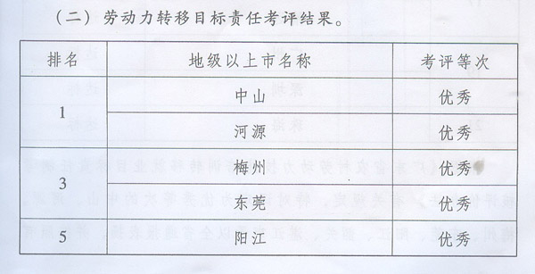 廣東省人民政府關(guān)于2012年度產(chǎn)業(yè)轉(zhuǎn)移和 勞動力轉(zhuǎn)移目標(biāo)責(zé)任考評情況的通報