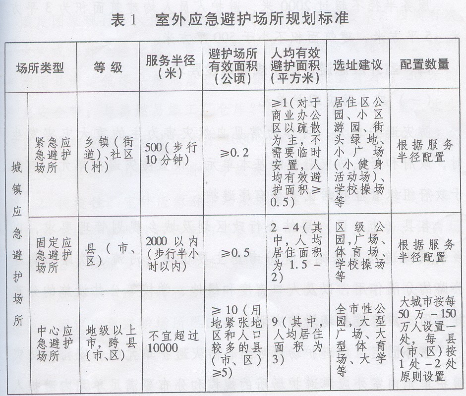 2.室內(nèi)應(yīng)急避護(hù)場(chǎng)所規(guī)劃標(biāo)準(zhǔn)。 服務(wù)半徑不超過(guò)2000米,避護(hù)人員人均建筑面積為3平方米-5平方米,建筑面積不小于500平方米。 四、室外應(yīng)急避護(hù)場(chǎng)所規(guī)劃建設(shè)要求 (一)建立防災(zāi)避護(hù)單元。 防災(zāi)避護(hù)單元,可作為常見(jiàn)自然災(zāi)害為主的重大災(zāi)害發(fā)生時(shí),政府和居民防災(zāi)避護(hù)的基本單元。設(shè)置防災(zāi)避護(hù)單元,有利于政府組織管理和居民安全有序避護(hù)。 各縣(市、區(qū))要結(jié)合行政區(qū)劃及城鄉(xiāng)規(guī)劃管理要求,以鄉(xiāng)鎮(zhèn)(街道)為基礎(chǔ),充分考慮主要山體、河流、鐵路、高速公路的分隔作用,以及人口密度和綠地、學(xué)校等公共設(shè)施的分布建立固定應(yīng)急避護(hù)場(chǎng)所防災(zāi)避護(hù)單元。 室外固定應(yīng)急避護(hù)場(chǎng)所可結(jié)合防災(zāi)避護(hù)單元統(tǒng)一安排,防災(zāi)避護(hù)單元內(nèi)室外應(yīng)急避護(hù)場(chǎng)所的規(guī)模和分布要滿足單元內(nèi)避護(hù)人員的避護(hù)需求。未納入防災(zāi)避護(hù)單元的部分偏遠(yuǎn)、零散居民點(diǎn)可由鄰近單元提供應(yīng)急避護(hù)。 (二)選址要求。 室外應(yīng)急避護(hù)場(chǎng)所的建設(shè)選址需要符合以下要求: 1.安全性。選址要避開(kāi)地震斷裂帶和可能發(fā)生地質(zhì)災(zāi)害的地區(qū),遠(yuǎn)離水庫(kù)泄洪區(qū)、低洼地易積水地區(qū),以及高壓走廊、次高壓以上燃?xì)夤艿馈⒊善酚洼斔凸艿?、大型油氣及其他危險(xiǎn)倉(cāng)儲(chǔ)區(qū)、大型化工園區(qū)等危險(xiǎn)設(shè)施的影響范圍,高層建筑物、高聳構(gòu)筑物的垮塌范圍。室外應(yīng)急避護(hù)場(chǎng)所距次生災(zāi)害危險(xiǎn)源的距離,要滿足國(guó)家現(xiàn)行重大危險(xiǎn)源和防火有關(guān)標(biāo)準(zhǔn)規(guī)范要求。四周有次生火災(zāi)或爆炸危險(xiǎn)源時(shí),要設(shè)置防火隔離帶或防火樹(shù)林帶。場(chǎng)所與周圍易燃建筑等一般地震次生災(zāi)源之間要設(shè)置不小于30米的防火安全帶;與易燃易爆工廠倉(cāng)庫(kù)、供氣廠、儲(chǔ)氣站等重大次生火災(zāi)或爆炸危險(xiǎn)源距離不小于1000米。應(yīng)急避護(hù)場(chǎng)所不得設(shè)在可能發(fā)生非煤礦山尾礦庫(kù)潰壩事故波及的范圍內(nèi)。 2.便捷性。室外應(yīng)急避護(hù)場(chǎng)所的設(shè)置要考慮人口密度分布、按照服務(wù)半徑要求進(jìn)行均衡布局,優(yōu)先考慮公園、廣場(chǎng)、體育場(chǎng)等現(xiàn)有公共設(shè)施資源。要選址于周邊道路條件較好的用地,便于受災(zāi)群眾的快速疏散轉(zhuǎn)移。緊急應(yīng)急避護(hù)場(chǎng)所要保證步行可快速到達(dá);固定應(yīng)急避護(hù)場(chǎng)所要保證車行和步行均可便捷到達(dá);中心應(yīng)急避護(hù)場(chǎng)所和區(qū)域性應(yīng)急避護(hù)場(chǎng)所除保證車行和步行可達(dá)性外,要確保與城市陸、海、空交通系統(tǒng)有便捷交通聯(lián)系。 3.合法性。縣級(jí)以上文物保護(hù)單位的公園等場(chǎng)所作為應(yīng)急避護(hù)場(chǎng)所時(shí),要?jiǎng)澏ū茏o(hù)區(qū)域,有關(guān)避護(hù)設(shè)施建設(shè)不得破壞文物及其環(huán)境。相關(guān)設(shè)施要盡量在文物保護(hù)單位的建設(shè)控制地帶之外。如因條件所限制需要設(shè)于建筑控制地帶之內(nèi)的,要依照文物保護(hù)的相關(guān)法律法規(guī)按程序報(bào)批。 (三)規(guī)劃要求。 1.緊急應(yīng)急避護(hù)場(chǎng)所規(guī)劃要求。 ?。?)緊急應(yīng)急避護(hù)場(chǎng)所要按照?qǐng)鏊?wù)范圍內(nèi)的晝夜最大人口峰值進(jìn)行設(shè)置。 (2)緊急應(yīng)急避護(hù)場(chǎng)所以城鄉(xiāng)開(kāi)敞空間為主,可利用城鄉(xiāng)中小學(xué)校操場(chǎng)、露天體育場(chǎng)所、社區(qū)(村)公園,露天停車場(chǎng)、小廣場(chǎng)、街頭綠地、農(nóng)村曬谷場(chǎng),以及地勢(shì)較高、地質(zhì)條件穩(wěn)定的空地等。 ?。?)城中村地區(qū)和高密度的商業(yè)、辦公區(qū),要通過(guò)“三舊”(舊城鎮(zhèn)、舊村莊、舊廠房)改造和城市更新增加綠地廣場(chǎng)、停車場(chǎng)等設(shè)置緊急應(yīng)急避護(hù)場(chǎng)所。 2.固定應(yīng)急避護(hù)場(chǎng)所規(guī)劃要求。 ?。?)以防災(zāi)避護(hù)單元為單位,應(yīng)急避護(hù)場(chǎng)所容納人數(shù)原則上按照規(guī)劃城鎮(zhèn)常住人口的20%-30%進(jìn)行配置。城市中心城區(qū)要按照不低于規(guī)劃城鎮(zhèn)常住人口的30%進(jìn)行配置。到2020年,全省固定應(yīng)急避護(hù)場(chǎng)所不少于3805處,容納人數(shù)不少于2276萬(wàn)人,有效面積不少于6828公頃。各地級(jí)以上市、順德區(qū)固定應(yīng)急避護(hù)場(chǎng)所規(guī)劃建設(shè)規(guī)模詳見(jiàn)表2。 表2全省各地級(jí)以上市、順德區(qū)室外固定 應(yīng)急避護(hù)場(chǎng)所規(guī)劃建設(shè)規(guī)模一覽表 ?