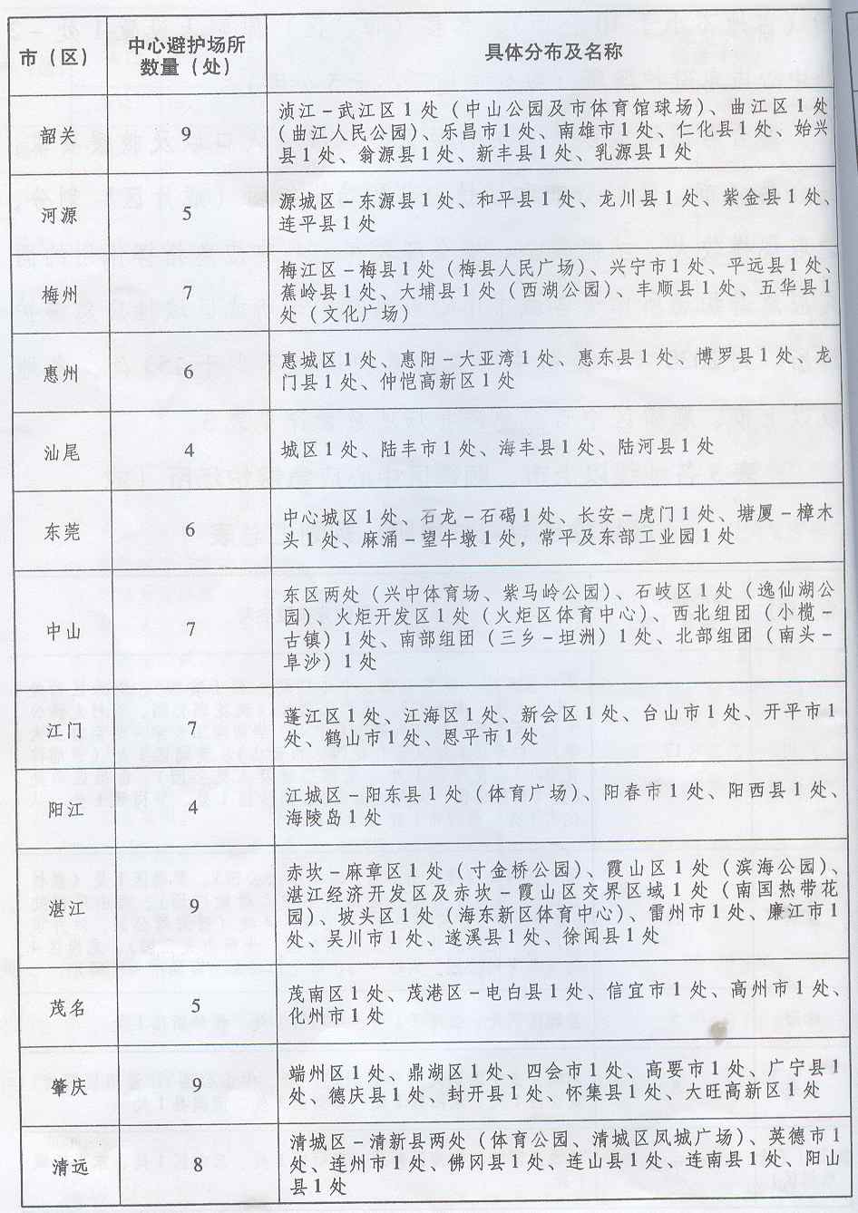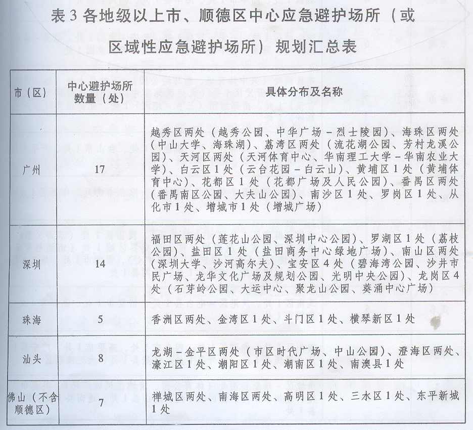 ?。?)各地級(jí)以上市要根據(jù)固定應(yīng)急避護(hù)場(chǎng)所規(guī)劃建設(shè)總體規(guī)模,結(jié)合當(dāng)?shù)鼐唧w的人口分布和場(chǎng)所服務(wù)半徑、選址布局原則、用地條件,以及現(xiàn)有和規(guī)劃的公園、體育場(chǎng)、廣場(chǎng)綠地、學(xué)校操場(chǎng)、綜合車場(chǎng)等室外場(chǎng)地,具體進(jìn)行固定應(yīng)急避護(hù)場(chǎng)所的空間布點(diǎn)和規(guī)模分配。 3.中心應(yīng)急避護(hù)場(chǎng)所規(guī)劃要求。 地級(jí)以上市按每50萬(wàn)人-150萬(wàn)人設(shè)置一處中心應(yīng)急避護(hù)場(chǎng)所(占地不小于10公頃),各縣(市、區(qū))原則上設(shè)置1處-2處中心應(yīng)急避護(hù)場(chǎng)所(每處占地不小于5公頃)。 綜合考慮地級(jí)以上市的行政區(qū)劃、服務(wù)人口以及救援要求,結(jié)合縣(市、區(qū))分布和城鎮(zhèn)內(nèi)部的功能組團(tuán)(或片區(qū))劃分,選取規(guī)模較大、功能較全、安全度較高,具有應(yīng)急指揮作用的固定應(yīng)急避護(hù)場(chǎng)所作為各城市中心應(yīng)急避護(hù)場(chǎng)所或區(qū)域性應(yīng)急避護(hù)場(chǎng)所。到2020年,全省中心應(yīng)急避護(hù)場(chǎng)所不少于153處,各地級(jí)以上市、順德區(qū)中心應(yīng)急避護(hù)場(chǎng)所數(shù)量詳見(jiàn)表3。 表3各地級(jí)以上市、順德區(qū)中心應(yīng)急避護(hù)場(chǎng)所(或 區(qū)域性應(yīng)急避護(hù)場(chǎng)所)規(guī)劃匯總表 ?
