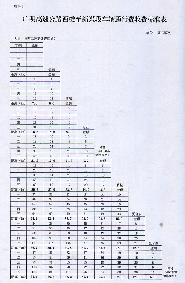 2.廣明高速公路西樵至新興段車輛通行費收費標準表 ? ? ? 省府辦公廳 2013年11月19日 |