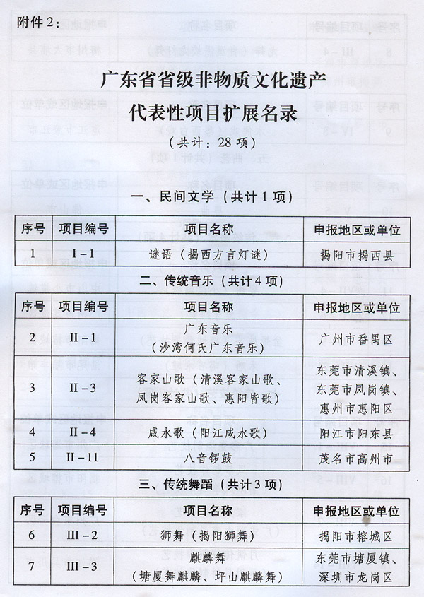 2.廣東省省級(jí)非物質(zhì)文化遺產(chǎn)代表性項(xiàng)目擴(kuò)展名錄 ? ? ? ? 廣東省人民政府 2013年11月22日 ? ? ? |
