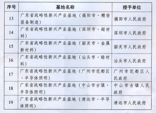 廣東省人民政府辦公廳關(guān)于公布第二批 廣東省戰(zhàn)略性新興產(chǎn)業(yè)基地名單的通知