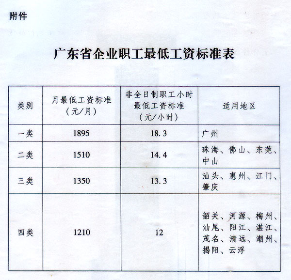 廣東省人民政府關(guān)于調(diào)整我省企業(yè)職工 最低工資標(biāo)準(zhǔn)的通知