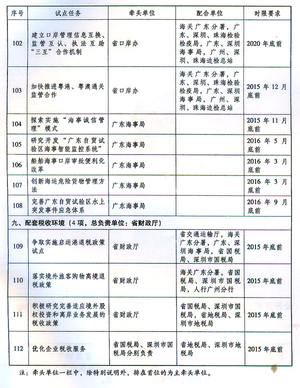 附件:中國(廣東)自由貿(mào)易試驗(yàn)區(qū)建設(shè)實(shí)施方案任務(wù)分工表