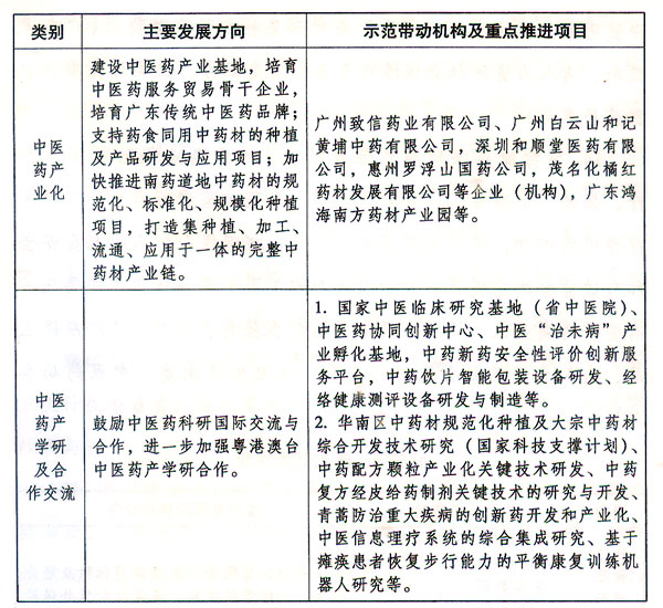 12.加快中醫(yī)藥產(chǎn)業(yè)化發(fā)展。培育壯大廣東傳統(tǒng)中醫(yī)藥品牌,打造中醫(yī)藥產(chǎn)業(yè)基地。完善廣東特色中藥材標(biāo)準(zhǔn)體系和中醫(yī)診療設(shè)備注冊(cè)審批標(biāo)準(zhǔn),加強(qiáng)藥食同用中藥材的種植及產(chǎn)品研發(fā)與應(yīng)用。加快推進(jìn)南藥道地中藥材的規(guī)范化、標(biāo)準(zhǔn)化、規(guī)?;N植,打造集種植、加工、流通、應(yīng)用于一體的完整中藥材產(chǎn)業(yè)鏈。培育中醫(yī)藥服務(wù)貿(mào)易骨干企業(yè),促進(jìn)中醫(yī)藥服務(wù)貿(mào)易發(fā)展,鼓勵(lì)中醫(yī)藥企業(yè)通過(guò)對(duì)外貿(mào)易、境外參展、商標(biāo)注冊(cè)、國(guó)際認(rèn)證等方式,擴(kuò)大中醫(yī)藥產(chǎn)品、技術(shù)和服務(wù)出口。(省中醫(yī)藥局、食品藥品監(jiān)管局負(fù)責(zé),省經(jīng)濟(jì)和信息化委、衛(wèi)生計(jì)生委、科技廳、商務(wù)廳參與)