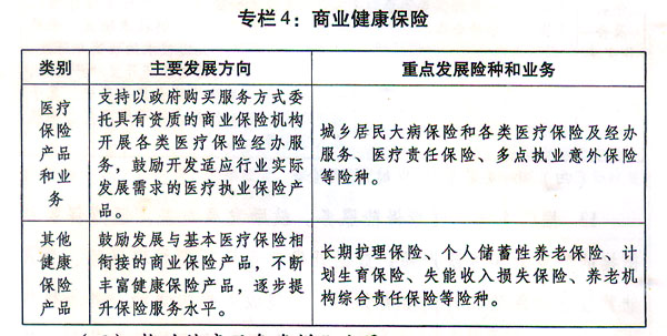 (四)積極發(fā)展商業(yè)健康保險(xiǎn)。 13.推廣多樣化健康保險(xiǎn)服務(wù)。鼓勵(lì)發(fā)展與基本醫(yī)療保險(xiǎn)相銜接的商業(yè)健康保險(xiǎn)產(chǎn)品;鼓勵(lì)開(kāi)發(fā)商業(yè)性長(zhǎng)期護(hù)理保險(xiǎn)、個(gè)人儲(chǔ)蓄性養(yǎng)老保險(xiǎn)、計(jì)劃生育保險(xiǎn)、失能收入損失保險(xiǎn)、養(yǎng)老機(jī)構(gòu)綜合責(zé)任保險(xiǎn)等服務(wù)產(chǎn)品和醫(yī)療責(zé)任保險(xiǎn)、多點(diǎn)執(zhí)業(yè)意外保險(xiǎn)等執(zhí)業(yè)保險(xiǎn)產(chǎn)品。支持商業(yè)保險(xiǎn)機(jī)構(gòu)承辦城鄉(xiāng)居民大病保險(xiǎn),完善推進(jìn)城鄉(xiāng)居民大病保險(xiǎn)政策。研究并適時(shí)出臺(tái)我省住房反向抵押養(yǎng)老保險(xiǎn)試行政策。有條件的地區(qū),可以按照職工自愿原則,允許使用個(gè)人社保賬戶(hù)一定比例余額購(gòu)買(mǎi)補(bǔ)充醫(yī)療保險(xiǎn)。(廣東保監(jiān)局、省人力資源社會(huì)保障廳負(fù)責(zé),省金融辦、衛(wèi)生計(jì)生委、中醫(yī)藥局參與)