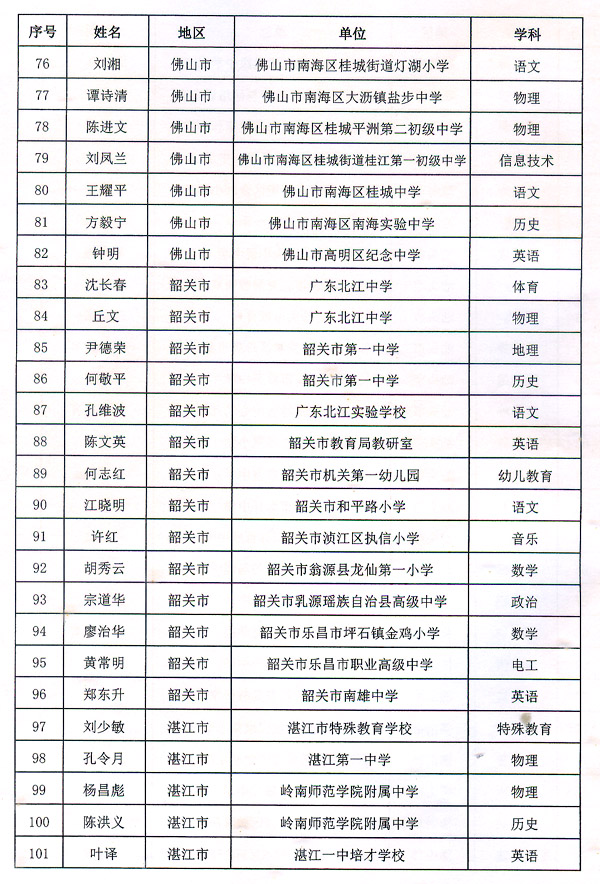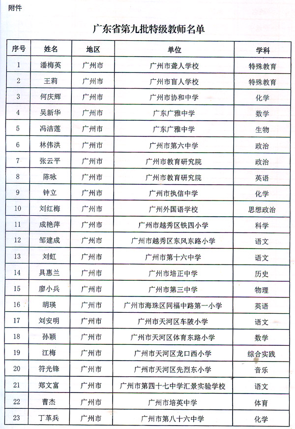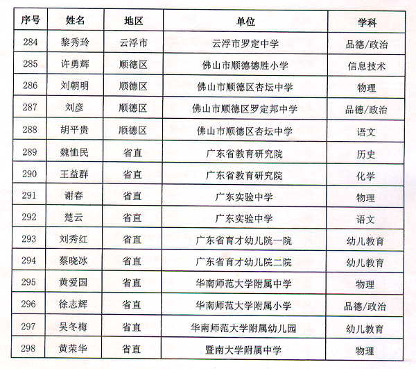 粵教師〔2016〕6號收悉。省人民政府同意潘梅英等298名同志為廣東省第九批特級教師。請按規(guī)定辦理有關(guān)手續(xù)。