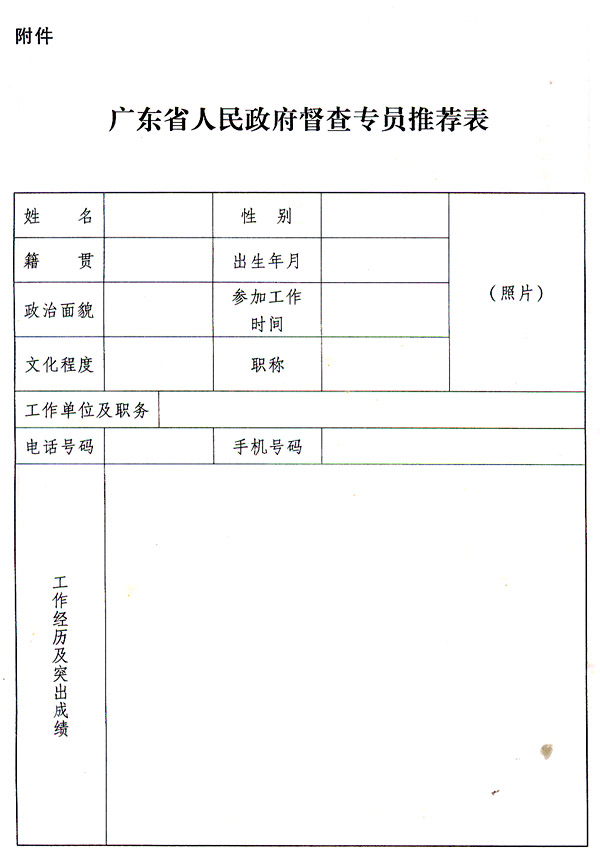根據(jù)省政府領(lǐng)導指示要求,按照《廣東省人民政府辦公廳關(guān)于印發(fā)廣東省人民政府督查專員管理暫行辦法的通知》(粵府辦〔2015〕16號),現(xiàn)決定從部分單位選聘第二批省政府督查專員。有關(guān)事項通知如下: 一、資格條件 (一)政治立場堅定,全局意識強; ?。ǘ┱邩I(yè)務(wù)熟悉,經(jīng)驗豐富; ?。ㄈ└矣趫猿衷瓌t,善抓督查調(diào)研、協(xié)調(diào)落實; ?。ㄋ模嵝恼讲楣ぷ鳎?/p> ?。ㄎ澹┰瓌t上為58周歲以下的副廳級以上干部。 ?。ㄒ唬└鞑块T擇優(yōu)推薦上報1名符合資格條件的人選; (二)省政府督查室對各部門上報的人選情況進行匯總初審后,報省政府秘書長審核; ?。ㄈ⑹≌貢L審核通過的人選,依次報請省政府分管領(lǐng)導審批和主要領(lǐng)導審定; (四)公布第二批省政府督查專員名單,并頒發(fā)聘書; ?。ㄎ澹┦≌讲槭矣谄溉魏蟮?5個工作日內(nèi),將聘任文件等資料抄送督查專員所在單位人事部門備案。 選聘第二批省政府督查專員,是進一步加強督促檢查工作,推動黨中央、國務(wù)院和省委、省政府決策部署落實的重要舉措。各有關(guān)單位要高度重視做好督查專員人選推薦工作,認真研究推薦人選,切實把經(jīng)驗豐富、公道正派、善抓落實的符合資格條件的干部推薦上來。推薦人選名單及《省政府督查專員推薦表》(見附件,一式兩份)請于3月20日前送省政府督查室。不推薦或推薦人選不符合資格條件的,須作出書面說明。 ? ? 省府辦公廳 2016年3月6日