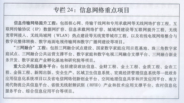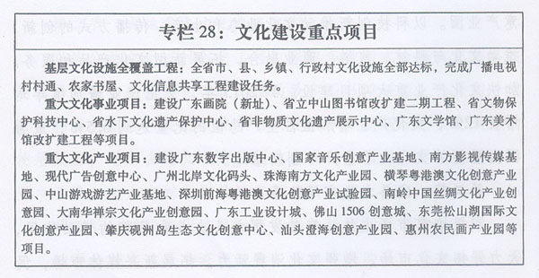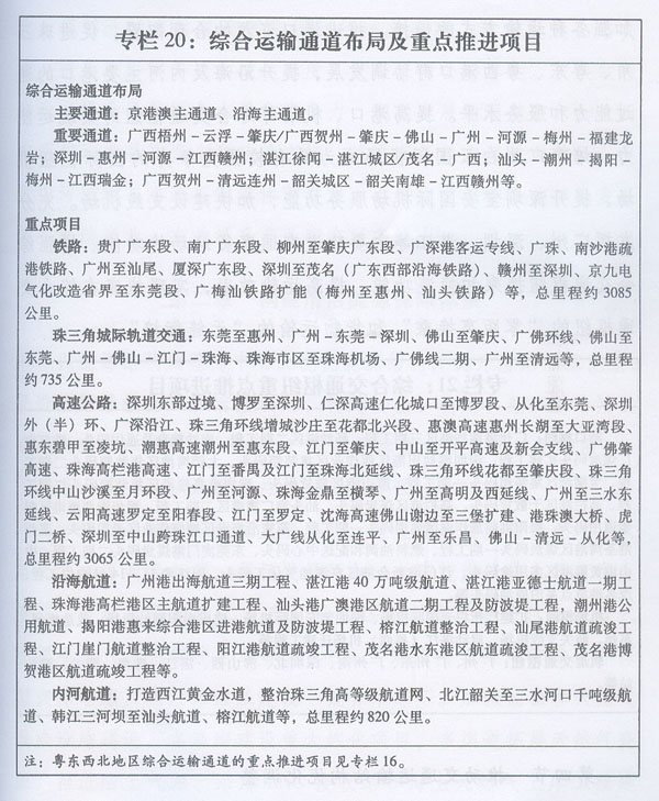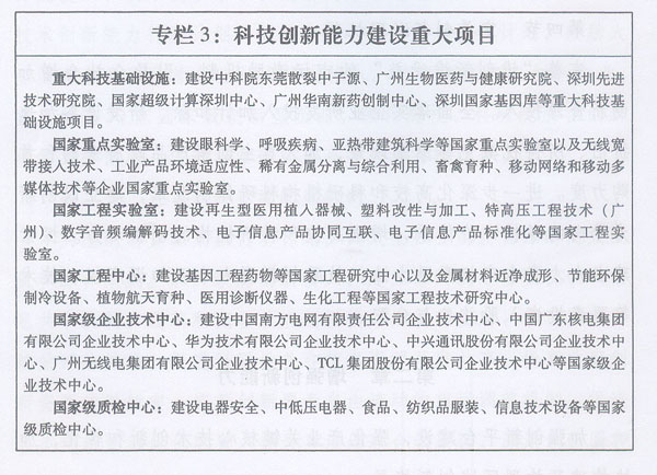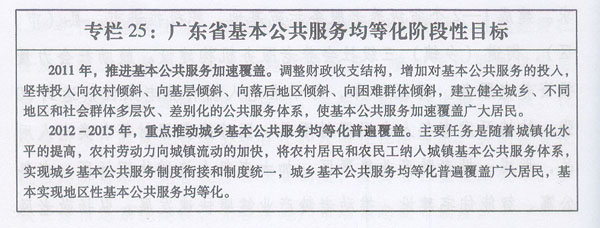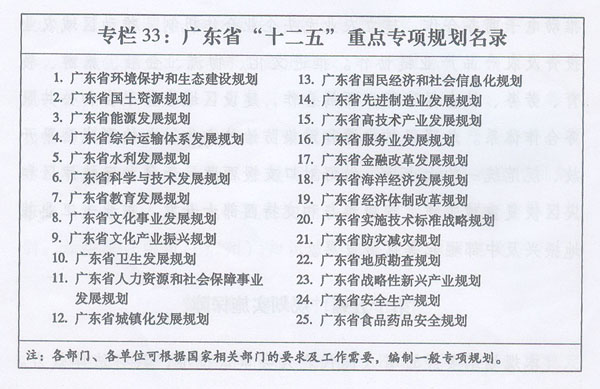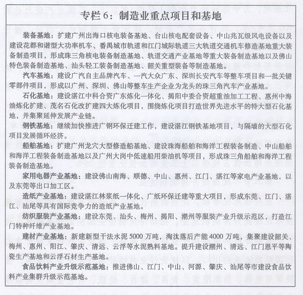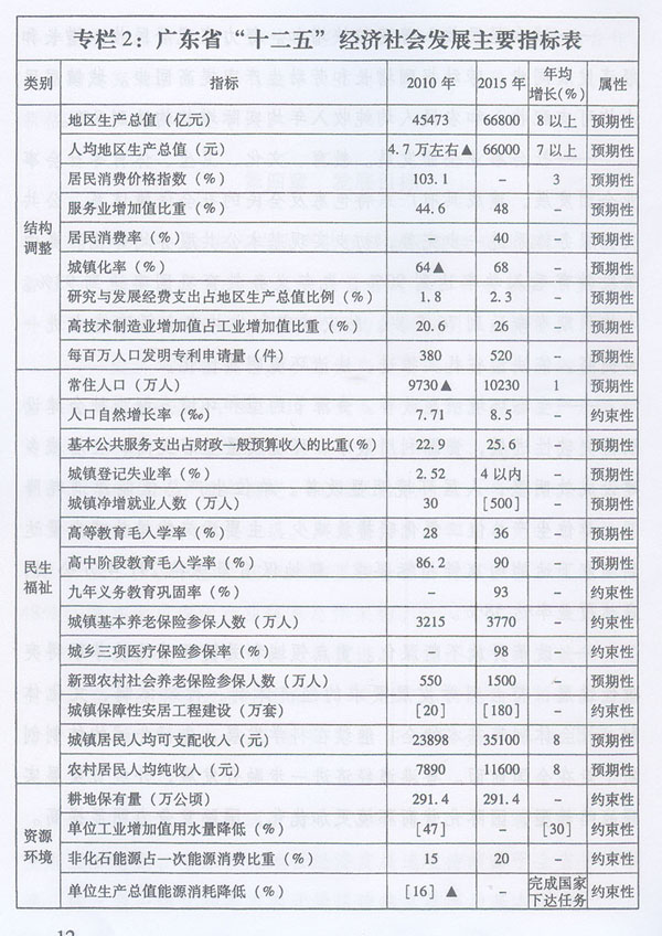 印發(fā)廣東省國民經(jīng)濟和社會發(fā)展 第十二個五年規(guī)劃綱要的通知 ? 各地級以上市人民政府,各縣(市、區(qū))人民政府,省政府各部門、各直屬機構(gòu): 《廣東省國民經(jīng)濟和社會發(fā)展第十二個五年規(guī)劃綱要》業(yè)經(jīng)省十一屆人大四次會議審議批準(zhǔn),現(xiàn)印發(fā)給你們,請認真組織實施。 ? ? ? ? 廣東省人民政府 二○一一年四月十九日 ? ? ? 廣東省國民經(jīng)濟和社會發(fā)展 第十二個五年規(guī)劃綱要 (2011年1月26日省十一屆人大四次會議審議批準(zhǔn)) ? ? 目 錄 第一篇 總體要求和發(fā)展目標(biāo) …………………………………………(1) 第一章 發(fā)展基礎(chǔ) ………………………………………………………(1) 第二章 發(fā)展環(huán)境 ………………………………………………………(5) 第三章 指導(dǎo)思想 ………………………………………………………(7) 第四章 發(fā)展目標(biāo) ………………………………………………………(10) 第二篇 創(chuàng)新驅(qū)動 建設(shè)創(chuàng)新型廣東 …………………………………(13) 第一章 完善創(chuàng)新機制 …………………………………………………(13) 第二章 增強創(chuàng)新能力 …………………………………………………(15) 第三章 打造創(chuàng)新人才高地 ……………………………………………(18) 第四章 優(yōu)化創(chuàng)新發(fā)展環(huán)境 ……………………………………………? (20) 第三篇 優(yōu)化升級 建設(shè)全球重要現(xiàn)代產(chǎn)業(yè)基地 …………………… (21) 第一章 推進現(xiàn)代服務(wù)業(yè)大發(fā)展 ……………………………………? (21) 第二章 促進制造業(yè)高級化 …………………………………………? (24) 第三章 培育發(fā)展戰(zhàn)略性新興產(chǎn)業(yè) …………………………………? (26) 第四章 提升產(chǎn)業(yè)競爭力 ……………………………………………? (29) 第四篇 內(nèi)外并舉 實現(xiàn)消費投資出口協(xié)調(diào)拉動 …………………… (31) 第一章 切實擴大消費 …………………………………………………(31) 第二章 有效擴大投資 …………………………………………………(33) 第三章 積極優(yōu)化進出口 ………………………………………………(35) 第四章 大力發(fā)展民營經(jīng)濟 ……………………………………………(37) 第五篇 強農(nóng)惠農(nóng) 建設(shè)美好新農(nóng)村 ………………………………… (38) 第一章 積極發(fā)展現(xiàn)代農(nóng)業(yè) ……………………………………………(38) 第二章 努力增加農(nóng)民收入 ……………………………………………(40) 第三章 大力推進宜居鄉(xiāng)村建設(shè) ………………………………………(41) 第四章 完善農(nóng)業(yè)農(nóng)村發(fā)展機制 ………………………………………(43) 第六篇 統(tǒng)籌城鄉(xiāng) 提升城鎮(zhèn)化發(fā)展水平 ……………………………(45) 第一章 提高城鎮(zhèn)化質(zhì)量 ………………………………………………(45) 第二章 強化中心城市集聚輻射功能 ………………………………… (47) 第三章 發(fā)展壯大縣域經(jīng)濟 ……………………………………………(48) 第四章 推進城鄉(xiāng)一體化管理 …………………………………………(49) 第七篇 聯(lián)動融合 構(gòu)建區(qū)域協(xié)調(diào)發(fā)展新格局 ……………………… (51) 第一章 實施主體功能區(qū)戰(zhàn)略 …………………………………………(51) 第二章 推進珠三角區(qū)域經(jīng)濟一體化 ………………………………… (52) 第三章 促進粵東西北地區(qū)跨越發(fā)展 ………………………………… (54) 第四章 建設(shè)海洋經(jīng)濟綜合開發(fā)試驗區(qū) ……………………………… (57) 第八篇 綠色發(fā)展 保護秀美山川 …………………………………… (59) 第一章 加強資源節(jié)約和綜合利用 …………………………………… (59) 第二章 加強環(huán)境保護 …………………………………………………(61) 第三章 推進生態(tài)建設(shè) …………………………………………………(64) 第四章 推動低碳發(fā)展 …………………………………………………(66) 第九篇 強化支撐 推進基礎(chǔ)設(shè)施現(xiàn)代化 ……………………………? (67) 第一章 建設(shè)現(xiàn)代綜合運輸體系 ……………………………………… (68) 第二章 構(gòu)建清潔能源保障體系 ……………………………………… (71) 第三章 完善民生水利基礎(chǔ)體系 ……………………………………… (73) 第四章 優(yōu)化高效信息網(wǎng)絡(luò)體系 ……………………………………… (75) 第十篇 普惠共享 保障和改善民生 …………………………………?(77) 第一章 提高居民收入 …………………………………………………(77) 第二章 促進就業(yè)和構(gòu)建和諧勞動關(guān)系 ……………………………… (78) 第三章 健全社會保障體系 ……………………………………………(80) 第四章 提高醫(yī)療衛(wèi)生服務(wù)水平 ………………………………………(81) 第五章 加快安居工程建設(shè) ……………………………………………(83) 第六章 加強人口和體育工作 