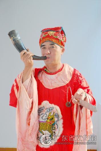 徐聞屯兵舞是受道教影響而形成的一種傳統(tǒng)舞蹈,在當?shù)亓鱾髦两褚延薪鼉砂倌甑臍v史。屯兵舞屬道教“正一派屯兵科”為“求仙奉道,治妖驅(qū)邪,祈保平安”祭典的儀式性舞蹈,至今仍代代傳承的原始科本《正一頒符屯兵科》手抄于晚清時期,集念、白、吟、唱、跳、鼓角伴奏于一體,是屯兵舞得以傳承的重要途徑之一。