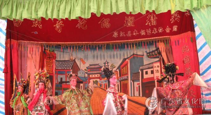 粵西白戲原稱“白戲仔”、“安鋪白戲”,是以粵西白話方言演唱的、有特定的音樂伴奏和多種板式綜合運用唱腔的一種杖頭木偶戲,流行于廣東省湛江市的廉江市、遂溪縣及廣西合浦、博白、欽州等地?;浳靼讘虼蠹s形成于清末,最初只是竹筒或木魚伴奏的民歌形式,至民國時期形成了獨特的音樂伴奏和唱腔,并相繼成立許多白戲木偶班。