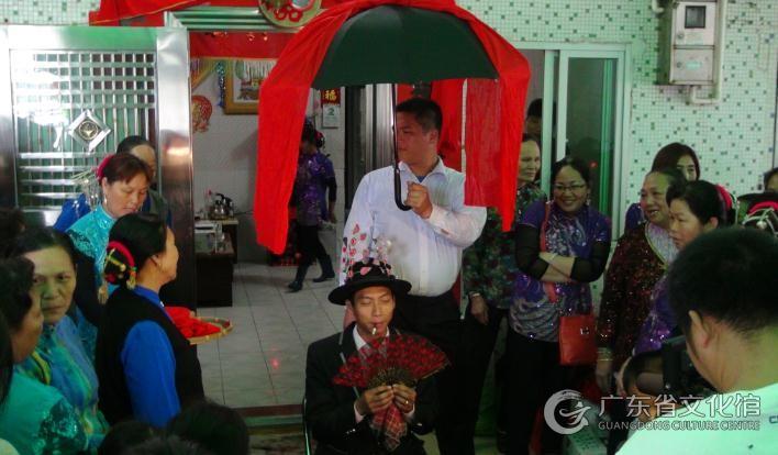 大亞灣地區(qū)古來就是疍民的聚居地之一,明末清初屈大均《廣東新語》稱,“諸蛋以艇為家,是曰蛋家。其有男未聘,則置盆草于梢;女未受聘,則置盆花于梢,以致媒妁。婚時以蠻歌相迎,男歌勝則奪女過舟。”大亞灣漁家婚嫁是大亞灣地區(qū)疍家漁民人生禮俗中的重要組成部分,其保留了沿海疍民“蠻歌相迎”等傳統(tǒng)婚嫁禮儀,是傳統(tǒng)上疍家漁民“浮家泛宅”生活的縮影?,F(xiàn)如今,大亞灣漁家婚嫁主要分布在惠州市大亞灣地區(qū)的沿海疍民聚居村落,包括大亞灣經(jīng)濟技術(shù)開發(fā)區(qū)的澳頭街道辦東升村、前進村、金門塘村和霞涌街道辦霞新村。