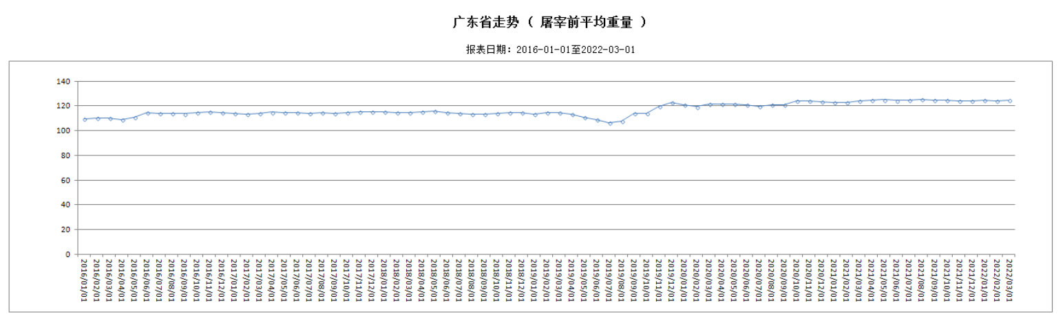 3月份,跟蹤監(jiān)測(cè)的316家生豬定點(diǎn)屠宰企業(yè)生豬屠宰前平均重量124.94公斤,環(huán)比上升0.64%。