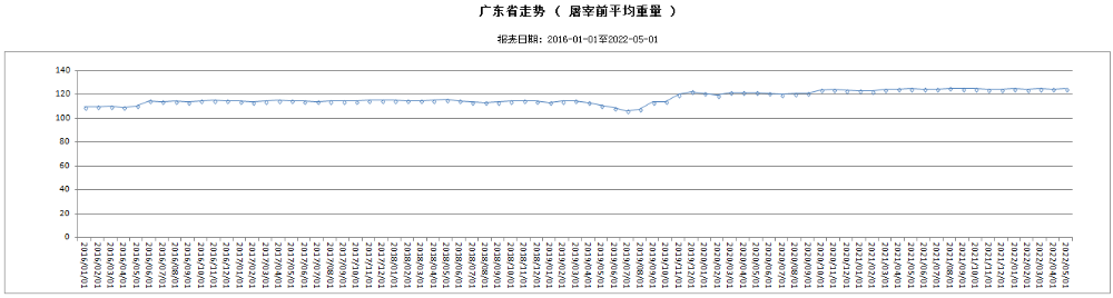 5月份,跟蹤監(jiān)測的316家生豬定點屠宰企業(yè)生豬屠宰前平均重量124.80公斤,環(huán)比上升0.18%。