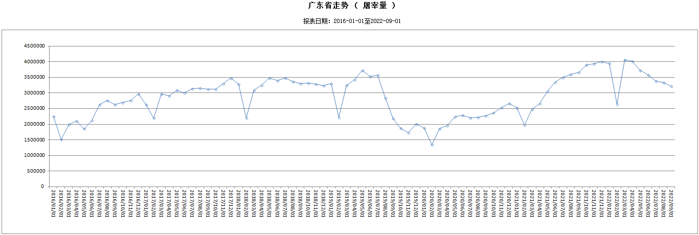 據(jù)對全省319家生豬定點(diǎn)屠宰企業(yè)跟蹤監(jiān)測,9月份共屠宰生豬3226459頭,比8月份下降3.03%。