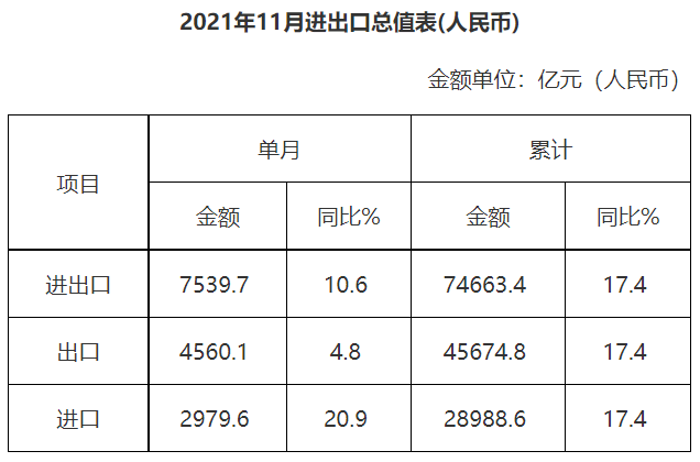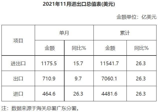 廣東省外貿(mào)進(jìn)出口總值表(2021年11月)