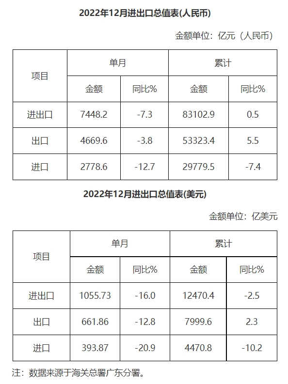廣東省外貿(mào)進(jìn)出口總值表(2022年12月)