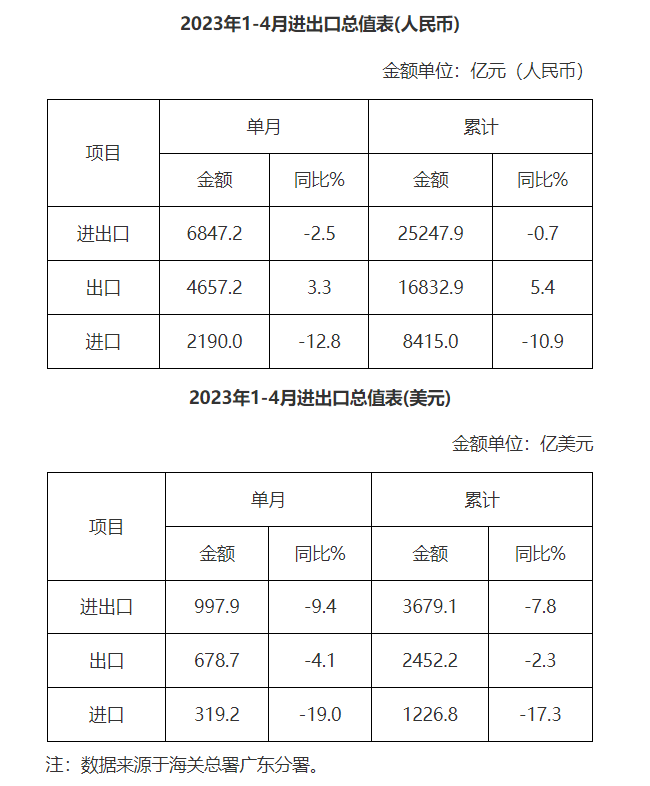 廣東省外貿(mào)進(jìn)出口總值表(2023年1-4月)