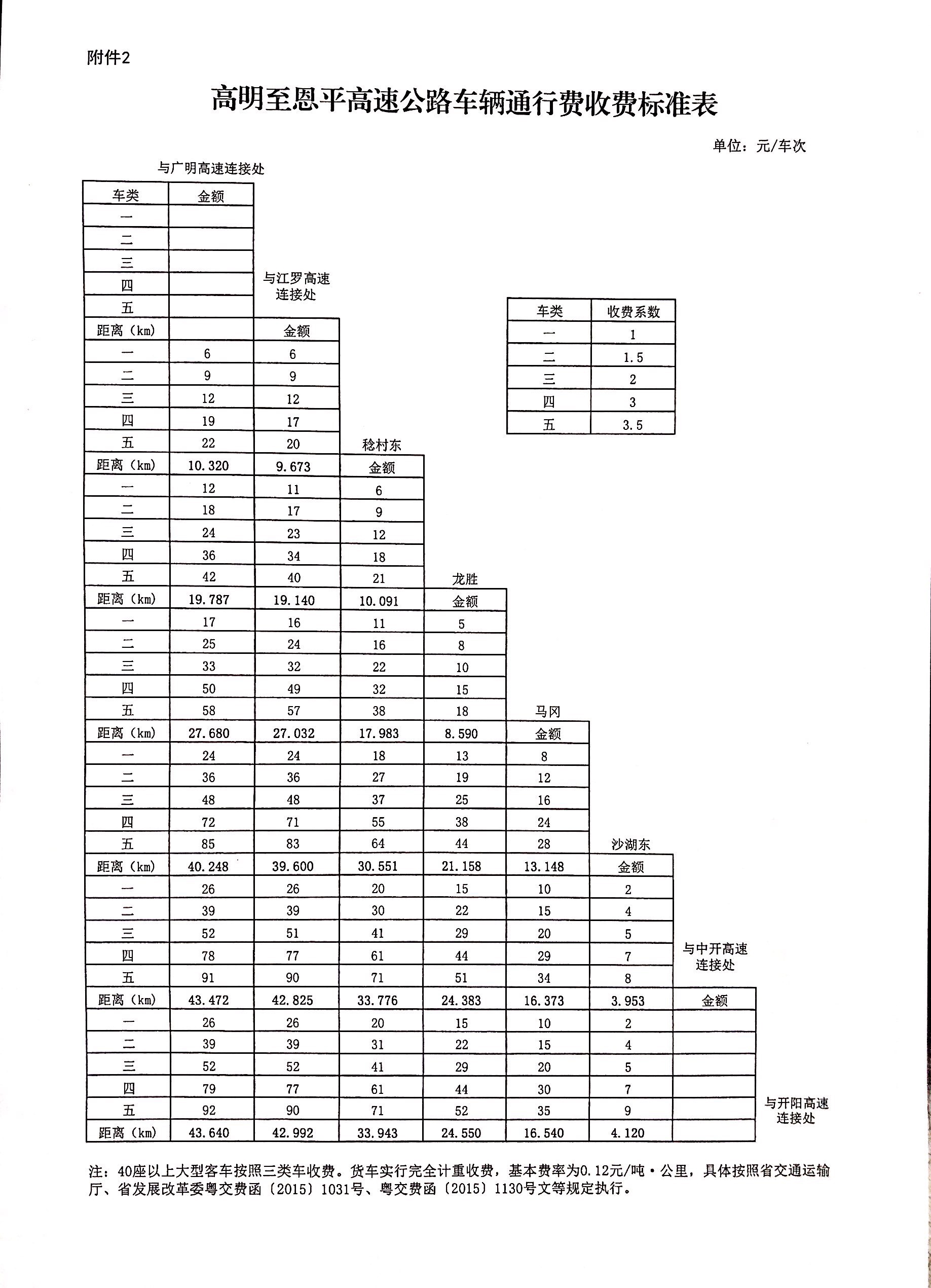 2.高明至恩平高速公路車(chē)輛通行費(fèi)收費(fèi)標(biāo)準(zhǔn)表