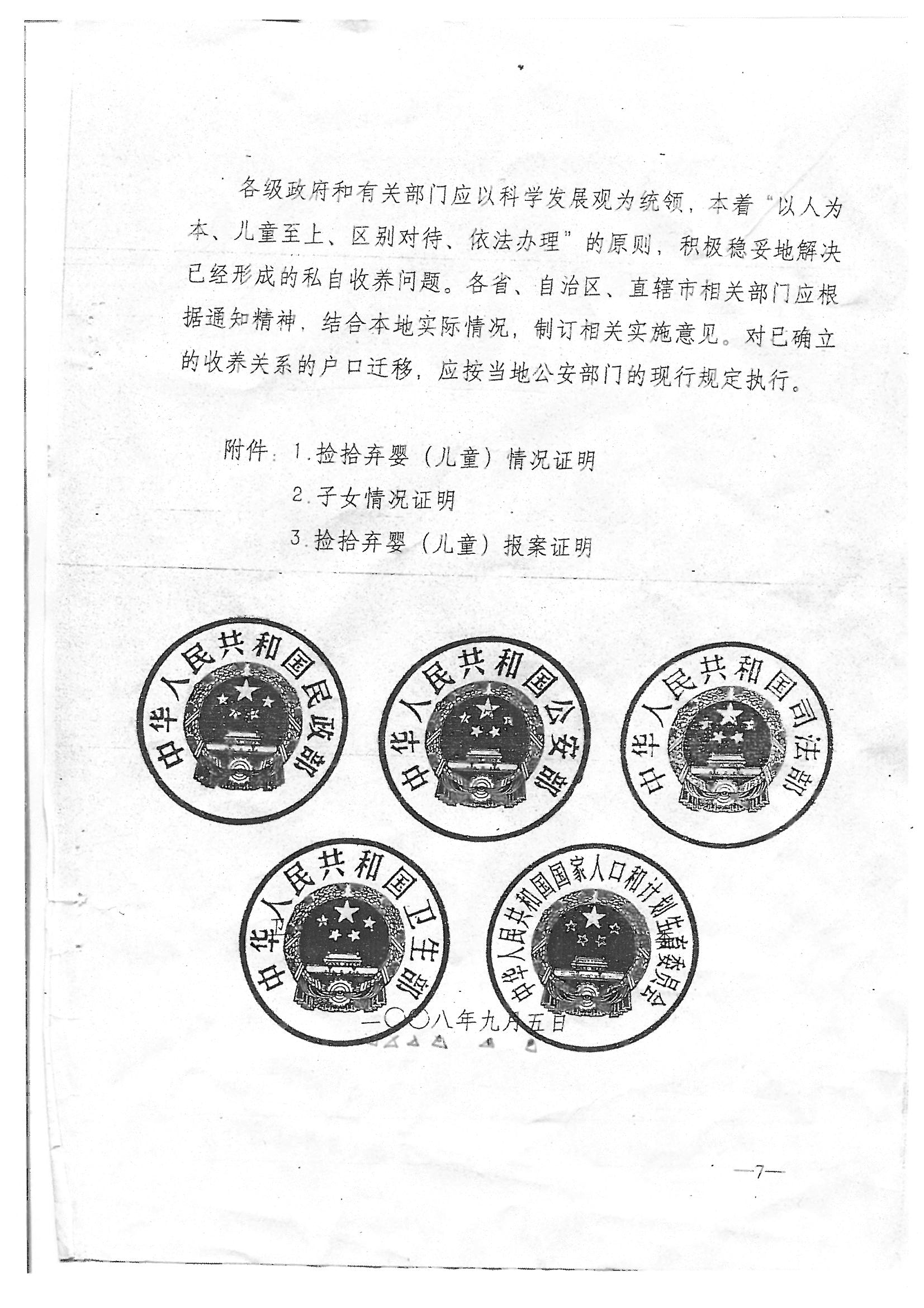 轉(zhuǎn)發(fā)民政部等5部委關(guān)于解決國內(nèi)公民私自收養(yǎng)子女有關(guān)問題的通知