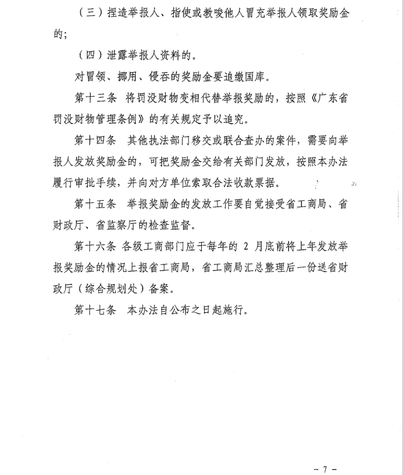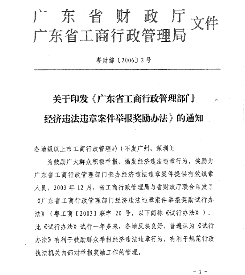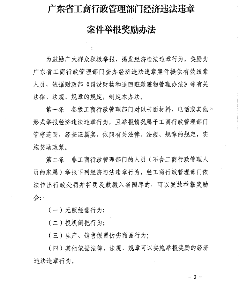 廣東省工商行政管理部門經(jīng)濟(jì)違法違章案件舉報(bào)獎(jiǎng)勵(lì)辦法