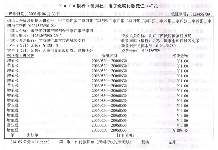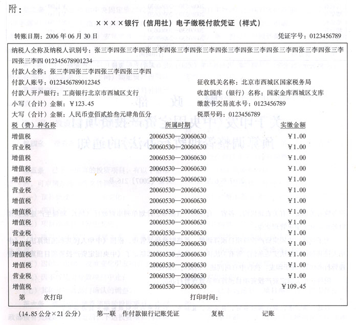 附:××××銀行(信用社)電子繳稅付款憑證(樣式)