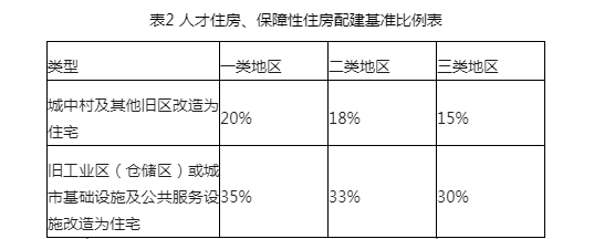 (二十)提高人才住房、保障性住房配建比例。拆除重建類城市更新項(xiàng)目改造后包含住宅的,一、二、三類地區(qū)的人才住房、保障性住房配建基準(zhǔn)比例分別由12%、10%、8%提高至20%、18%、15%,具體比例根據(jù)《深圳市城市更新項(xiàng)目保障性住房配建規(guī)定》(以下簡(jiǎn)稱《配建規(guī)定》)進(jìn)行核增、核減后確定,其中屬于工業(yè)區(qū)(倉(cāng)儲(chǔ)區(qū))或城市基礎(chǔ)設(shè)施及公共服務(wù)設(shè)施改造為住宅的核增比例由8%提高至15%。上述人才住房、保障性住房配建比例提高部分的50%對(duì)應(yīng)的建筑面積在城市更新單元規(guī)劃容積率測(cè)算時(shí)計(jì)入基礎(chǔ)建筑面積。具體如下: