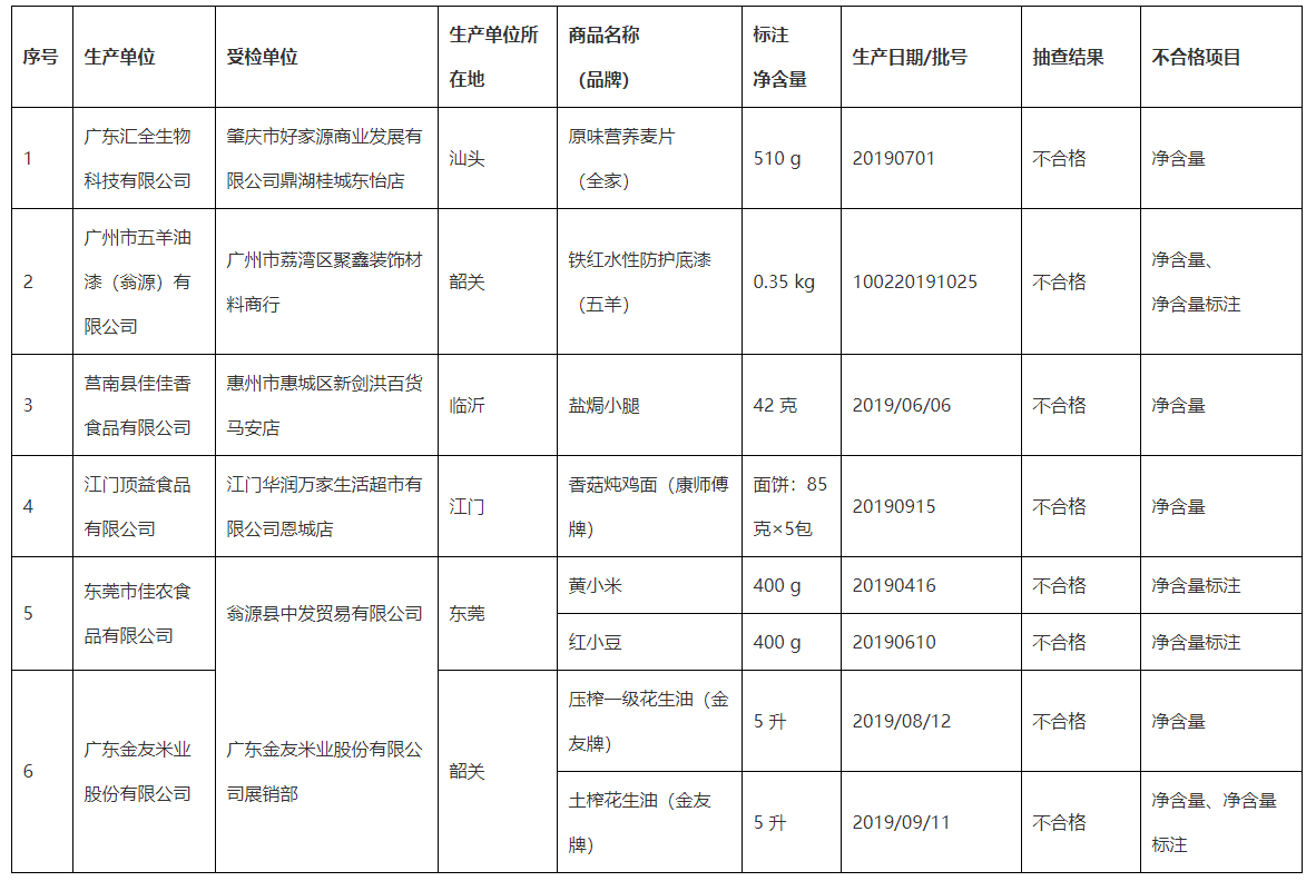 根據(jù)《中華人民共和國計量法》《廣東省實施<中華人民共和國計量法>辦法》等相關(guān)規(guī)定,我局開展了2019年度定量包裝商品凈含量省級計量專項監(jiān)督抽查?,F(xiàn)將抽查結(jié)果予以通告。