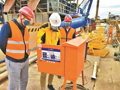 廣州地鐵安全管理人員在施工現(xiàn)場檢查臨電設備的安全情況。圖片來源:廣州日報